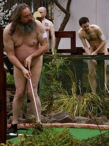 So. Naked mini-golf. There you go. We haven't had this much opportunity to use "putter," "hole" and "stroke" puns since the heyday of the Tiger Woods scandal. But since we kind of like our job, we'll leave that to you people. Swing away, friends. Like you're standing in a cool breeze.